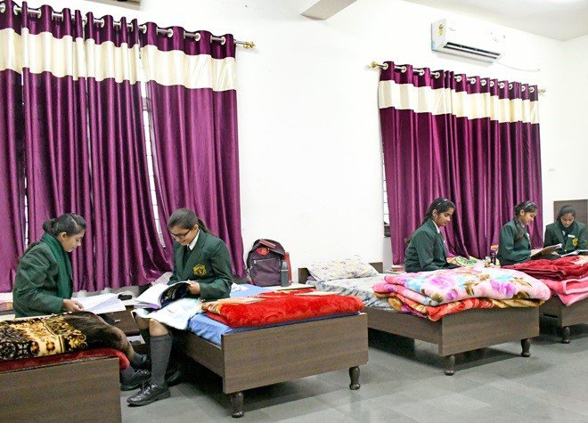 The school is providing air-conditioned, comfortable and conducive hostel facility for the students to have a productive campus life, providing a perfect setting for academic pursuits. Hostel rooms are fully furnished with bed, mattress, wardrobe, table, chair, AC, hot water facility, bucket, mug, dustbin, curtain, lights etc.
